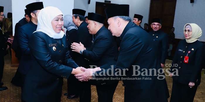SURABAYA, RadarBangsa.co.id – Gubernur Jawa Timur, Khofifah Indar Parawansa melantik 20 orang pejabat tinggi pratama (Eselon II) di lingkungan Pemprov Jatim, di Gedung Negara Grahadi, Surabaya.