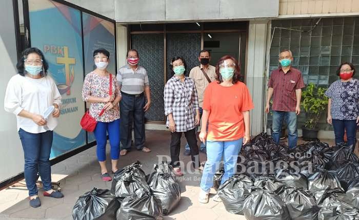 Seksi ibadah lansia Gereja Isa Almasih Jemaat Pringgading Semarang, membagi paket sembako sebanyak 410 paket sembako kepada jemaat lansia yang benar benar membutuhkan.