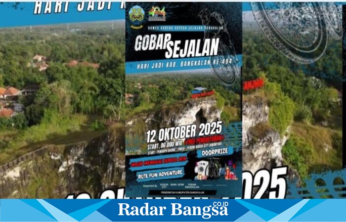 BANGKALAN, RadarBangsa.co.id – Pemerintah Kabupaten Bangkalan menyiapkan agenda berbeda untuk memperingati Hari Jadi Bangkalan ke-494. Melalui kegiatan bertajuk “GOBAR SEJALAN” (Gowes Bareng Sepeda Jelajah Bangkalan), warga diajak berolahraga sambil menikmati keindahan alam, Sabtu (12/10/2025).