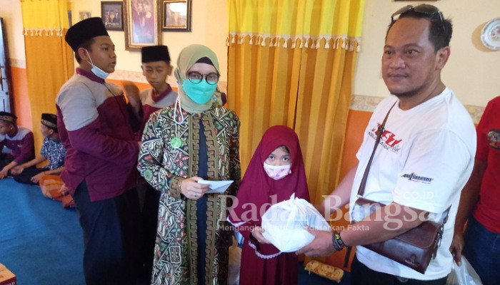 “Hari ini kami menghadiri acara pernikahan salah satu member di Kediri. Pas kumpul bareng, akhirnya sekalian kita sepakat untuk mengadakan acara peduli sesama dengan memberi santunan anak yatim-piatu di rumah Mbak Fira ini,” katanya.