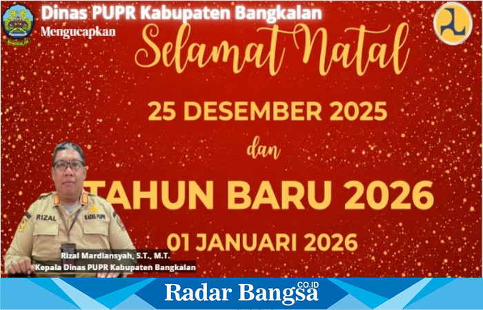 Dinas PUPR Kabupaten Bangkalan Mengucapkan Selamat Natal 25 Desember 2025 dan Tahun Baru 2026, 01 Januari 2026Selasa, 23 Desember 2025 - 22:09 WIB