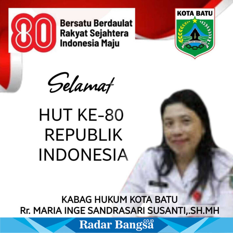 KOTA BATU, RadarBangsa.co.id- Pemerintah Kota Batu Kabag Hukum Beserta Seluruh Staf Mengucapkan Selamat HUT RI Ke-80 – 2025