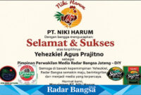 PT. NIKI HARUM dengan bangga mengucapkan: Selamat & Sukses kepada Yehezkiel Agus Prajitno atas terpilihnya sebagai Pimpinan Perwakilan Media Radar Bangsa Jateng – DIY…