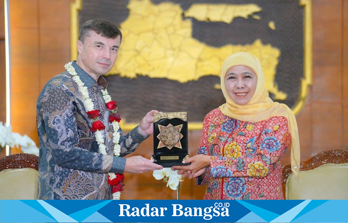 SURABAYA, RadarBangsa.co.id — Gubernur Jawa Timur Khofifah Indar Parawansa menerima kunjungan Duta Besar Federasi Rusia untuk Indonesia, H.E. Sergei Tolchenov, di Gedung Negara Grahadi, Surabaya, Selasa (21/10/2025). Pertemuan tersebut membahas peluang kerja sama strategis antara Rusia dan Jawa Timur, terutama di sektor maritim, pendidikan, dan ekonomi.