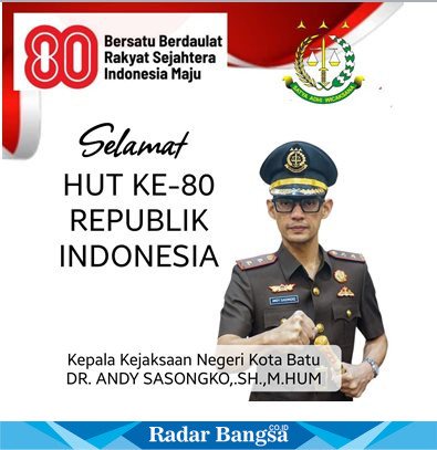 KOTA BATU, RadarBangsa.co.id -Kepala Kejaksaan Negeri Kota Batu, Beserta Seluruh Jajaran dan Staf Mengucapkan Selamat HUT RI Ke- 80 – 2025