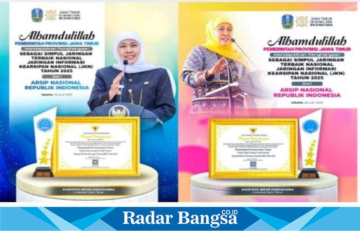 JAKARTA, RadarBangsa.co.id – Pemerintah Provinsi Jawa Timur meraih penghargaan Simpul Jaringan Terbaik dalam pengelolaan Jaringan Informasi Kearsipan Nasional (JIKN) dari Arsip Nasional Republik Indonesia (ANRI).