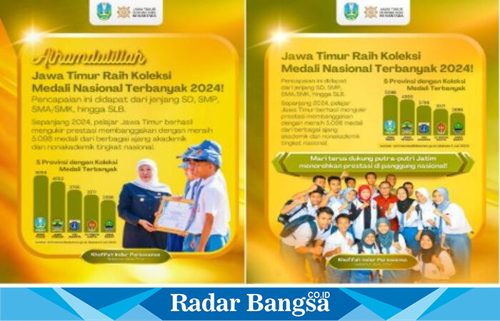 MATARAM, RadarBangsa.co.id – Tahun 2024 menjadi catatan emas bagi dunia pendidikan di Jawa Timur. Provinsi yang dikenal sebagai lumbung talenta muda ini kembali mencatatkan diri sebagai daerah dengan capaian prestasi nasional tertinggi di Indonesia. Ribuan medali berhasil dipersembahkan para siswa dari berbagai jenjang pendidikan, mulai dari tingkat dasar hingga menengah atas.