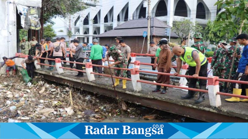 KENDAL,RadarBangsa.co.id – Jajaran Polres Kendal bersama TNI dan unsur Pemerintah Kabupaten Kendal membersihkan tumpukan sampah yang menyumbat aliran Sungai di pusat Kota Kendal, Sabtu (14/2/2026). Aksi ini dilakukan setelah hujan deras menyebabkan debit air meningkat dan meluap akibat aliran sungai terhambat sampah.
