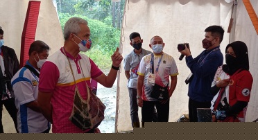 Namun, Ganjar tetap menemui sejumlah kontingen di tenda, yang sedang berteduh. Di sanalah Ganjar berkomunikasi dengan para atlet dan official. Dinginnya cauca tidak mengalahkan kehangatan mereka yang saling bercanda sembari memberikan motivasi kepada para peserta.