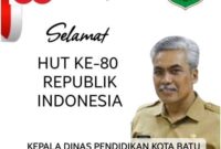 KOTA BATU, RadarBangsa.co.id – Pemerintah Kota Batu Kepala Dinas Pendidikan Beserta Seluruh Staf dan Karyawan. Mengucapkan Selamat HUT RI Ke-80, 2025