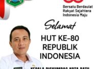 KOTA BATU, RadarBangsa.co.id – Pemerintah Kota Batu Kepala Diskumdag Beserta Seluruh Staf dan Karyawan, Mengucapkan Selamat HUT RI Ke-80,2025