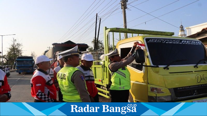 KENDAL,RadarBangsa.co.id – Satuan Lalu Lintas (Satlantas) Polres Kendal melakukan aksi pemasangan bendera merah putih ke pengguna jalan sebagai bentuk peringatan menjelang HUT ke-80 Kemerdekaan Republik Indonesia.
