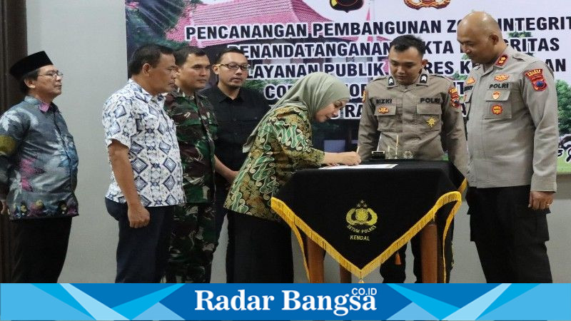 Komitmen tersebut diwujudkan Polres Kendal melalui pencanangan pembangunan Zona Integritas dan penandatanganan Pakta Integritas Pelayanan Publik.