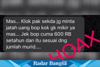 Bondowoso, RADARBANGSA.CO.ID – Beredar potongan percakapan yang menyebutkan Sekda meminta jatah BOP (Bantuan Operasional Sekolah) Kepala Diskominfo Bondowoso Ghozal Rawan menyebutkan itu tidak benar….