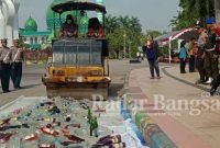PAMEKASAN, RadarBangsa.co.id – Ratusan botol yang berisi minuman keras (Miras) dari berbagai merk dan knalpot brong yang dimusnakan oleh Kepolisian Resort Pamekasan. Barang haram…