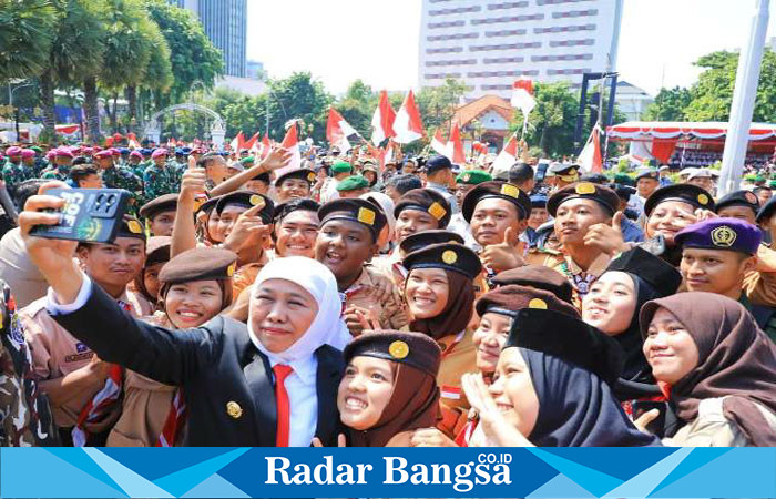 SURABAYA, RadarBangsa.co.id – Gubernur Jawa Timur, Khofifah Indar Parawansa, mengajak seluruh masyarakat untuk aktif dalam menunjukkan cinta kepada tanah air dengan tindakan nyata. Hal ini menjadi krusial dalam mewujudkan cita-cita dan kesejahteraan bangsa untuk mencapai Indonesia Maju.
