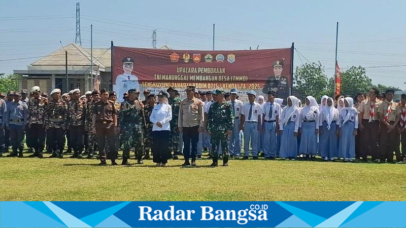 Upacara pembukaan TMMD Sengkuyung Tahap VI Tahun 2025 digelar di lapangan Desa Kertomulya, Rabu (8/10/2025).